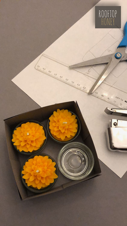 Diese Leistung vollbringen natürlich nicht wir, sondern unsere fleißigen Bienen. Aber umgerechnet bedeutet dies, dass wir mit jedem entnommenen Kilo Bienenwachs auf den Verkauf von 24 Gläsern Honig verzichten. Rechnet man nun noch die zusätzliche Arbeitszeit (diesmal wieder für den Imker) und das ganze zusätzliche Material (Gießformen, Wachsschmelzer, etc.), so wird schnell ersichtlich, dass es wirtschaftlicher wäre, nur Honig zu produzieren und auf die Kerzenherstellung zu verzichten.